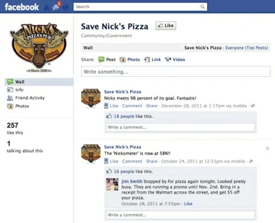 Public support was strong following the email. Someone set up a Facebook page, Save Nick's Pizza, and according to Sarillo, "We doubled our sales in each restaurant for the first week and stayed at a 75 percent increase for a couple of weeks." It took a while, but Nick's remains a viable business today.