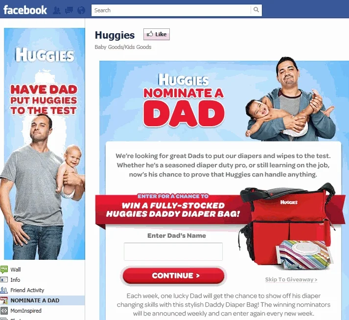 Huggies has changed its approach and now encourages people to nominate great dads for a chance to win Huggies products.
