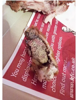 "I have a habit of picking the chicken off the bone with my fingers, and as I pulled the second piece apart, I saw this horrible wrinkled foreign body.