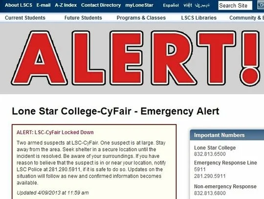 The college posted an emergency alert on its website, and the school went into lock-down, with students held in classrooms until more information was known.