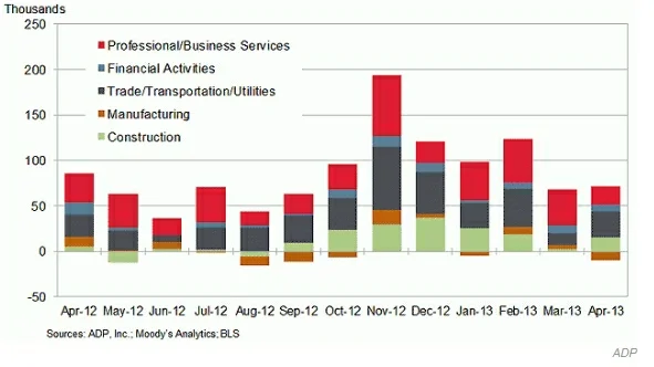 "From the just-released ADP report, a chart which shows that manufacturing actually lost jobs in the month!"