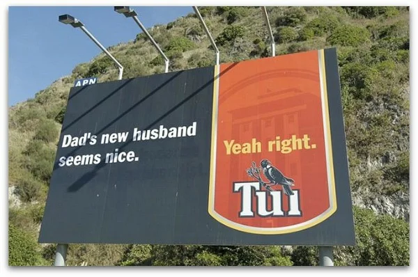 "Our intention with the current Tui Yeah Right billboard 'Dad's new husband seems nice' was to highlight the common situation or uncertainty experienced when someone's parent remarries.