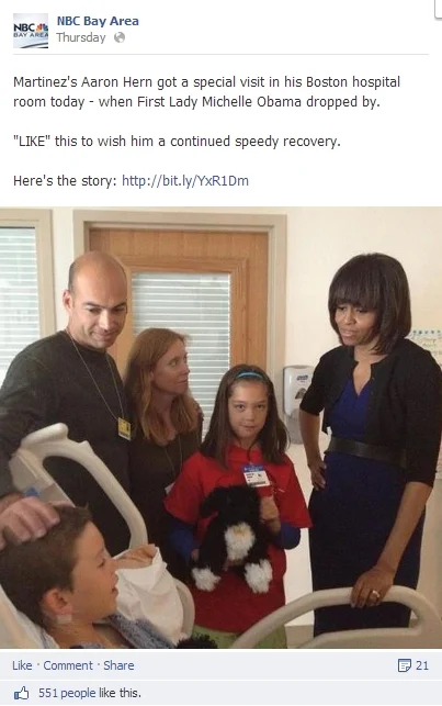 Calling it a "desperate attempt to trade on people's feelings," Ray described an NBC Facebook picture of a boy in a hospital bed. The post asks people to "'LIKE' this to wish him a continued speedy recovery." Ray points out that "liking" a post does nothing to help the boy recover.