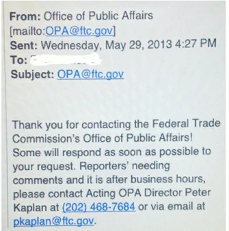 The Federal Trade Commission, the government agency responsible for consumer protection, needs to protect its own reputation. An embarrassing automated email response is riddled with errors.