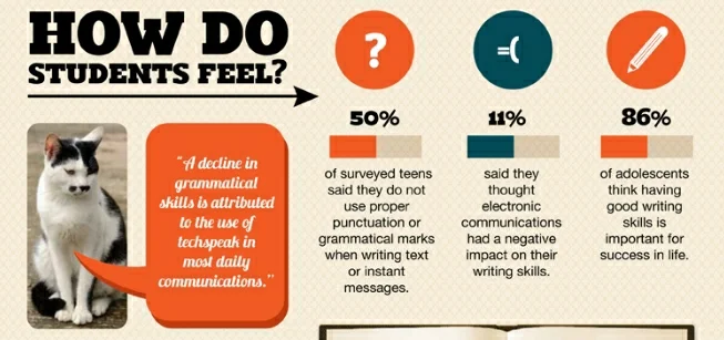 The good news is that 86% of middle-schoolers believe that good writing skills are important in life, and only 11% think that texting negatively impacts their writing.