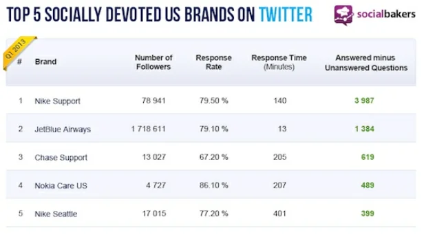 Which brands are most responsive to customers on Twitter? Socialbakers released its view of the top five companies.