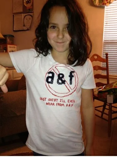 Public reaction has been strong. As of yesterday, about 1,000 people signed an online petition to boycott Abercrombie. And a nine-year-old in Plano, TX, altered her T-shirt to express her feelings: