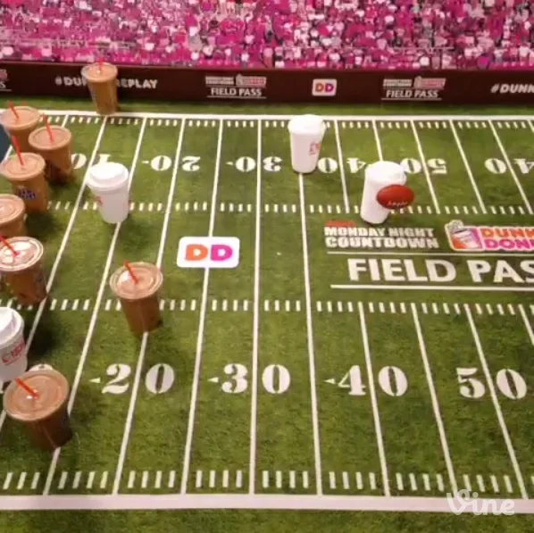 "During this evening's Monday Night Football pregame show on ESPN, Dunkin' Donuts will run what's most certainly the first TV ad made entirely from a single Vine-Twitter's popular six-second social video format."