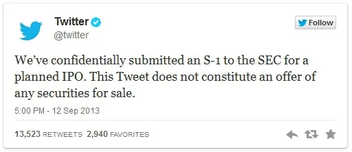 Twitter CEO Dick Costolo has applied for an initial public offering. The process will be interesting to watch because Dick Costolo is interesting to watch. And, of course, we're all hoping Twitter avoids Facebook's IPO disaster.