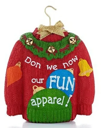 The trend of wearing festively decorated Christmas sweaters to parties is all about fun, and this ornament is intended to play into that, so the planning team decided to say what we meant: "fun." That's the spirit we intended and the spirit in which we hope ornament buyers will take it.