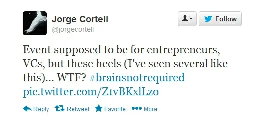 With the hashtag #brainsnotrequired, Jorge Cortell seemed to imply that stilettos pictured in his tweet aren't appropriate for work. In return, he was criticized for sexism. In a Wall Street Journal blog post, "Are Stilettos Too Sexy for Business Meetings," the author described the result:
