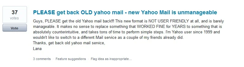 "Most of us picked Yahoo because of its interface. We don't like gmail! Please let us go back!"