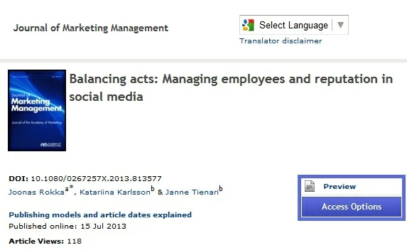 According to lead author Joonas Rokka, "employees have a crucial role as active meaning makers and reputation builders in various social-media networks that include customers, colleagues, and friends." Rokka also emphasized companies' role in employees' well-being: