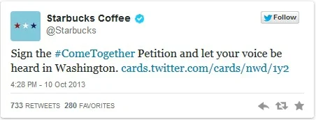 If that's not enough, Starbucks is asking people to text a code to encourage the government to get back to work.
