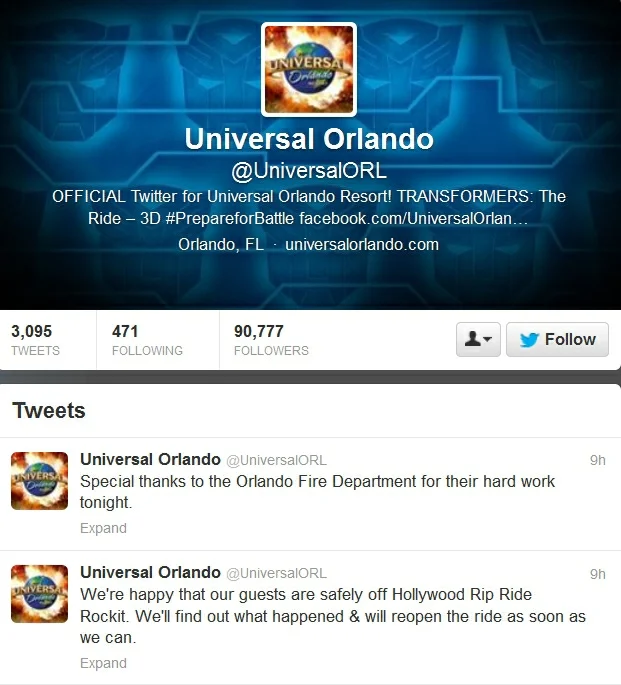 - Assess the communications we have from Universal Orlando so far. What's your view of the spokesperson's statement and the tweets?