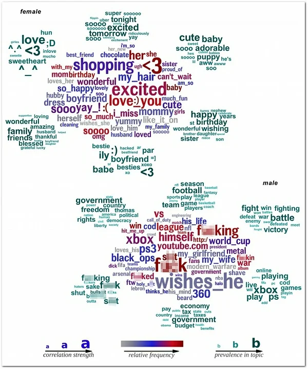 "It may seem obvious that a super extraverted person would talk a lot about parties, but taken altogether, these word clouds provide an unprecedented window into the psychological world of people with a given trait. Many things seem obvious after the fact and each item makes sense, but would you have thought of them all, or even most of them?"