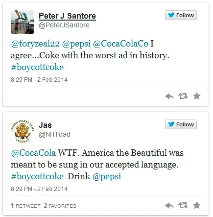 Tweets reflected the sentiment of people angry about the commercial, with some calling it unpatriotic and un-American.