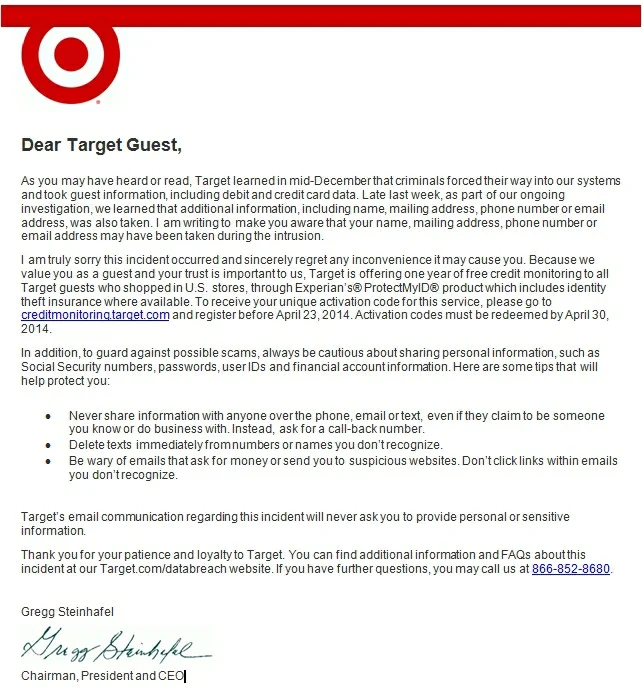 Target's Latest Communication with Customers