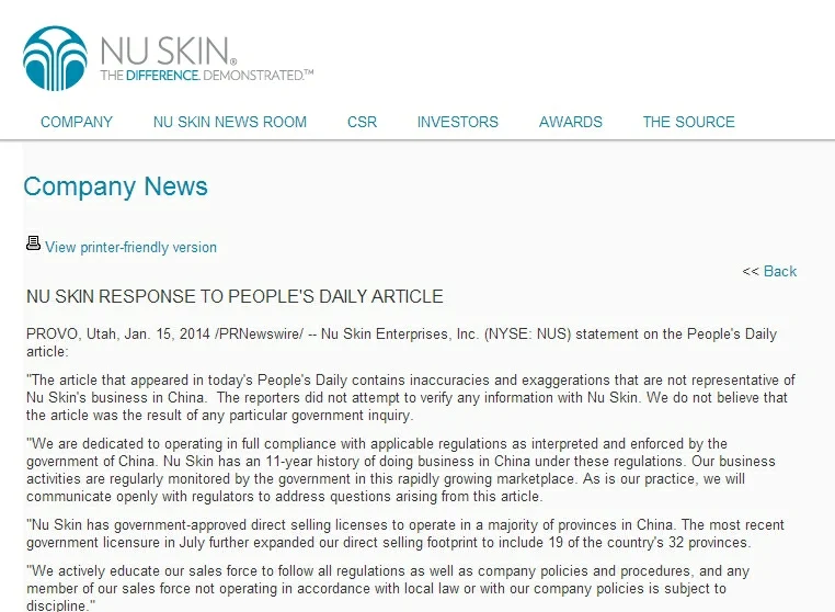 Nu Skin Addresses Controversy