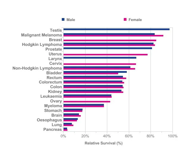 This post includes survival rates for cancers, with pancreatic at a sad 3%: