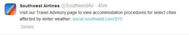 Southwest Airlines is communicating clearly to customers affected by upcoming storms. In a tweet, the company linked to a simple page with further instructions.