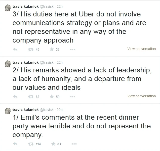 In 13 tweets, Uber CEO Travis Kalanick explained the company's position.
