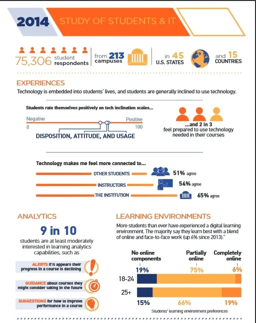 Educause Center for Analysis and Research (ECAR) has published its findings about students' use of technology. The survey instrument asked undergraduates about their experience with individual devices, school technologies, learning environments, and personal preferences. More than 75,000 students and 1,700 faculty members in 13 countries participated.
