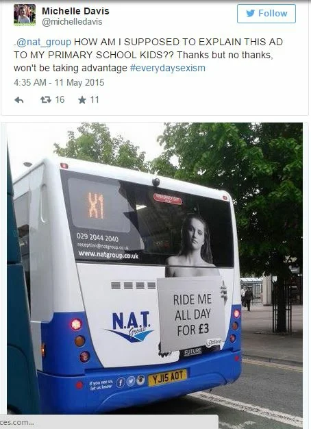 Are people just too sensitive, or did this Welsh bus company cross a line with its ad? The picture of a naked woman with a provocative line was created for a Cardiff, Wales, company promoting its cross-city service.