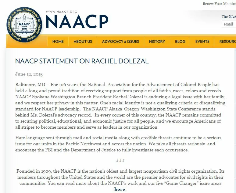 The NAACP released a statement supporting Dolezal and addressing threats to the organization.