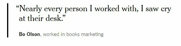 "The article goes further than reporting isolated anecdotes. It claims that our intentional approach is to create a soulless, dystopian workplace where no fun is had and no laughter heard. Again, I don't recognize this Amazon and I very much hope you don't, either. More broadly, I don't think any company adopting the approach portrayed could survive, much less thrive, in today's highly competitive tech hiring market. The people we hire here are the best of the best. You are recruited every day by other world-class companies, and you can work anywhere you want."