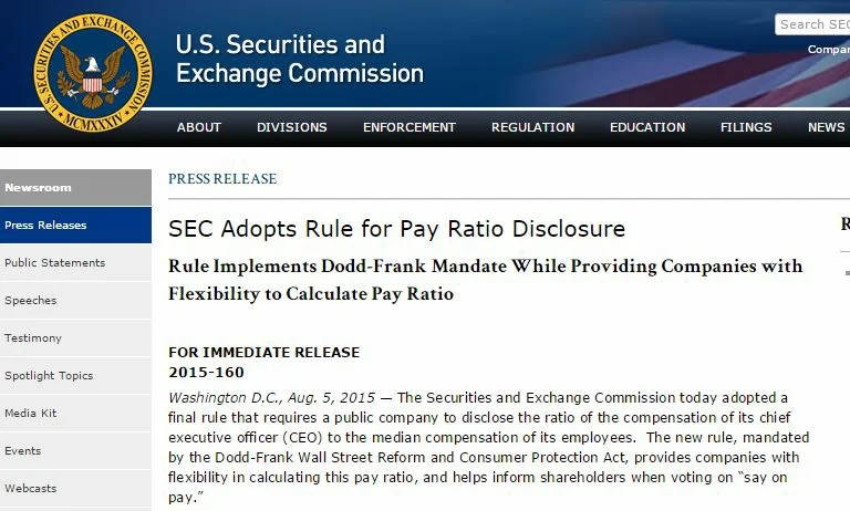 The U.S. Securities and Exchange Commission voted to require CEOs to disclose how their pay compares to that of employees in their organization. The requirement is part of the Dodd-Frank Act, passed in 2010 to prevent another financial crisis and to protect consumers.