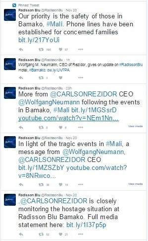 Radisson Blu has been active on Twitter, providing peridic updates and links to statements and videos.