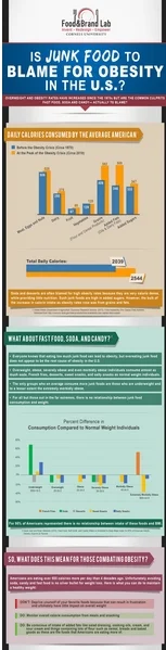 A Cornell University study concludes, "consumption of fast food, soft drinks, or candy was not positively correlated with measures of BMI," meaning (excluding those very under- and overweight), people consumed these foods at about the same rate. But a Forbes writer criticizes the "false claim" reflected in Cornell's press release (and similarly reported elsewhere): "Candy, soda and fast food are not driving the rising obesity trend in the U.S."