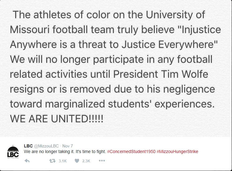 Students have forced the resignation of University of Missouri President Tim Wolfe. Unhappy with Wolfe's response during racial incidents at the university, some students have been on a hunger strike, while the football team announced plans to boycott upcoming games.