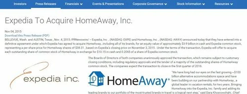 In HomeAway's press release, Expedia CEO expresses his enthusiasm: