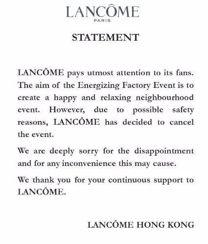 The company made one short statement: "Hong Kong Actress Denise Ho is not a spokesperson of LANCOME. We are sorry for the confusion caused. Thank you for your continuous support to LANCOME."