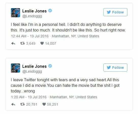 Lena Dunham, creator and star of Girls, said she was tired of reading, for example, "10 mentions that say I should be stoned to death." Iggy Azalea went off social media sites after a body-shaming photo of her in a bathing suit went viral. The most recent is Leslie Jones, star of the new Ghostbusters movie. Jones was subjected to racist and sexist comments by a known troll, who encouraged users to send her pictures of apes.