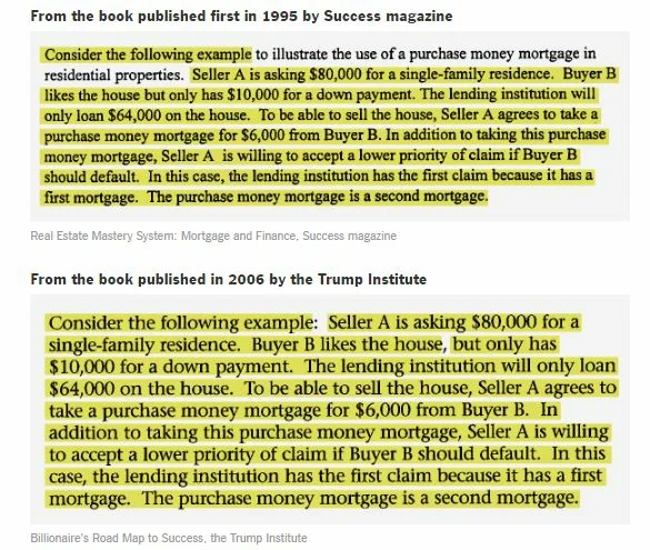 The Times offered this comparison between Trump's materials and a 1995 book published by Success magazine.