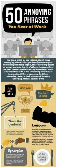 Once a year or so, I write about business clichés and jargon. This infographic, generated by GoToMeeting is a good summary of perhaps the worst examples heard in companies recently.