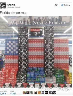 Understandably, people were outraged. This reminds me of the golf club that used a similar promotion in 2013. Also, this year, Coca-Cola took down a display of soda cartons at a Florida Walmart.