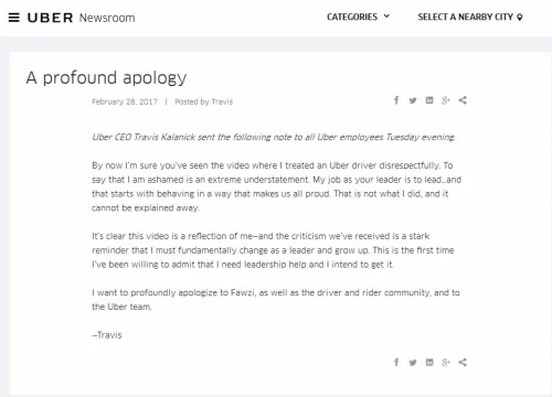 In uncharacteristic fashion for Uber, Kalanick apologized.
