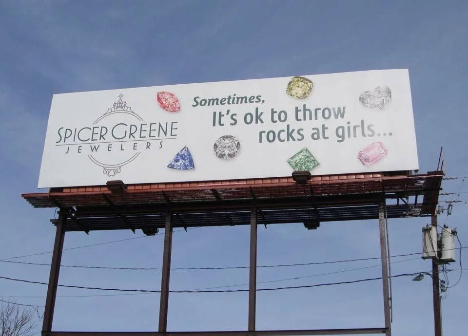 Spicer Green Jewelers has apologized for a billboard that some think condones violence against women. The store in Asheville, NC, responded to the controversy in a TV interview and a social media post.