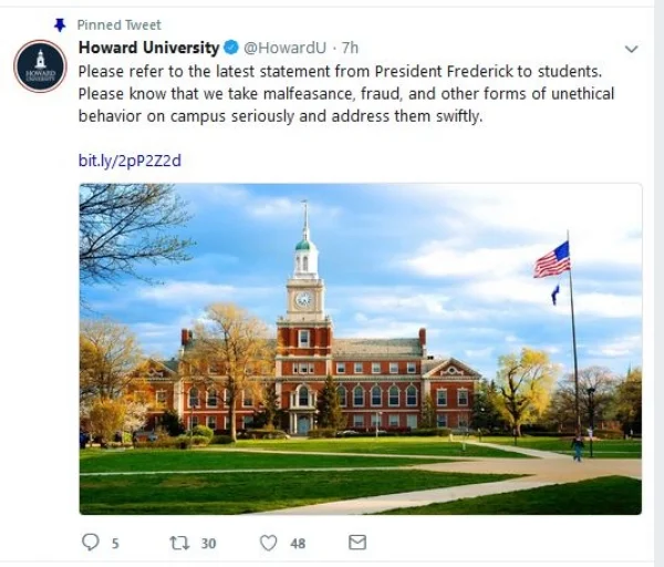 In a cover letter to the report, President Wayne A.I. Frederick wrote, “Howard University is committed to uncovering any impropriety in the administration of university-provided financial aid and federal student aid, to remediating all problems identified during this investigation, and to maintaining a robust compliance program to prevent any inappropriate dealings in the administration of financial aid."