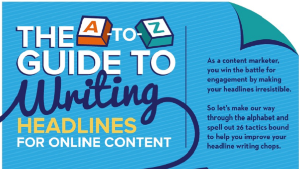 An infographic written by Feldman Creative and designed by Infobrandz offers tips for writing headlines, particularly for online content. The advice focuses on capturing attention, which makes sense in our cluttered online world: posing a question, focusing on the reader, using a colon or m-dash, and using visceral language.