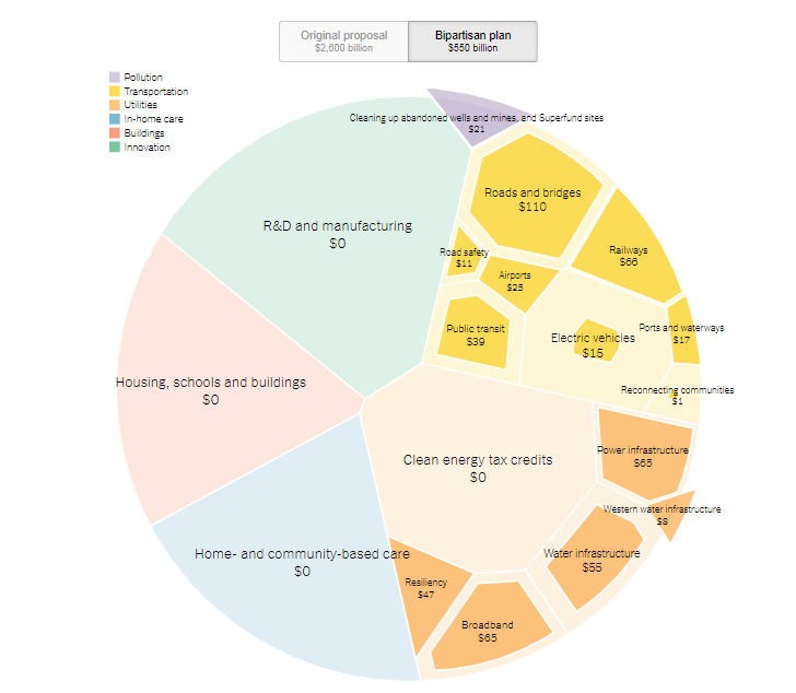 President Biden’s “Build Back Better” infrastructure plan may be difficult to visualize. When we consider trillions of dollars, traditional business charts—bars, pies, and lines—may not be the best choice.